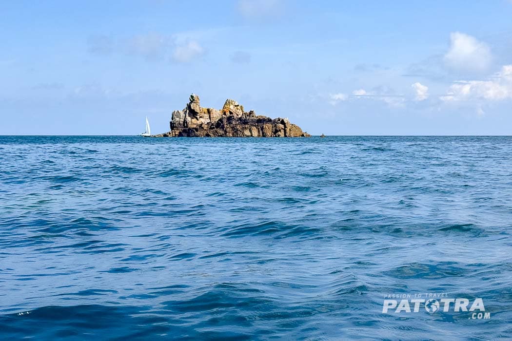 Wir verlassen die Fähre gemeinsam mit zwei oder drei Handvoll Tagestouristen. Einige von ihnen tragen schwere Taschen die Treppen der Anlegestelle hinauf. In ihnen befindet sich alles, was man für einen entspannten Tag am Strand benötigt. Ein paar wenige sind gleich mit Koffer angereist. Sie haben das Glück, etwas länger auf dem kleinen Eiland verweilen zu dürfen. Oben angekommen, wird ihr Gepäck in umgebauten Quads verstaut, um dann in das nahegelegene White House Hotel oder in eines der Cottages gebracht zu werden. Die Quads sind die einzigen Fahrzeuge auf der Insel. Autos und Fahrräder sind auf der Insel nicht erlaubt.
