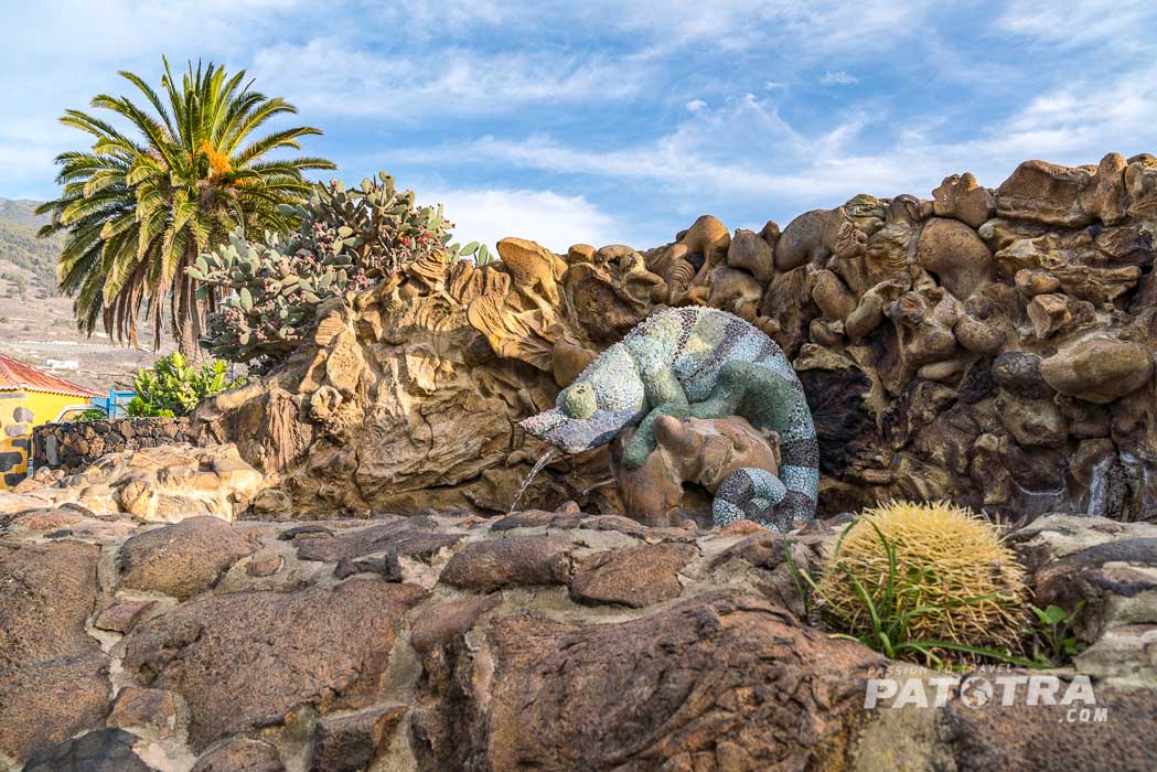Hier stehen sich auch einige der inseltypischen Drachenbäume und eine Statue zu Ehren des verliebten Schäfers, der bei einem gescheiterten Liebesbeweises in die Tiefe stürzte. Der Hirtensprung war einst eine in den Bergen von La Palma von den Hirten praktizierte Art der Fortbewegung. Mit Hilfe eines langen Stockes konnten sie springend so manche Schlucht überwinden. Der verliebte Hirte sollte der Sage nach als Liebebeweis seinen Hirtenstab an diesem Abgrund dreimal umspringen. Zwei Versuche glückten. Den Dritten überlebte er aber nicht. Er hätte besser daran getan, für seine Angebetete ein Gedicht zu verfassen. Aber hinterher ist man ja immer schlauer.