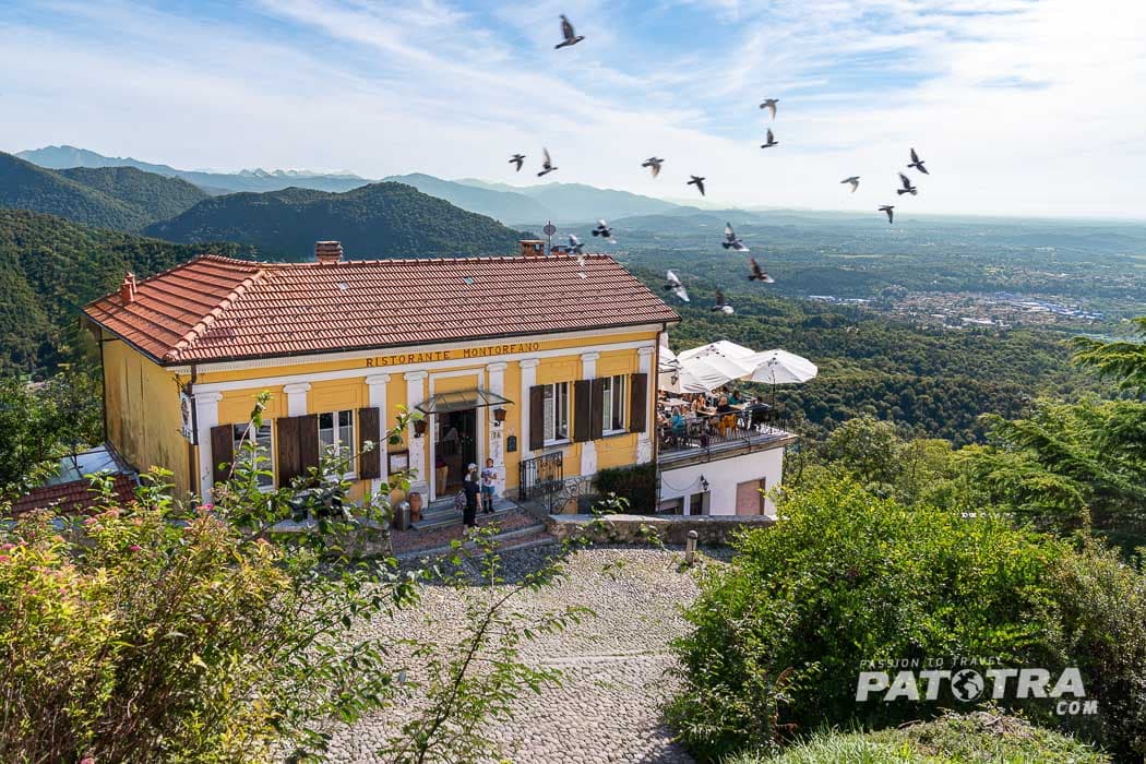 Oben im kleinen Dorf Santa Maria del Monte angekommen, belohnen traumhafte Aussichten über den Lago di Varese, die Poebene und bis zu den Voralpen. Enge Gassen, ein paar Cafés, kleine Unterkünfte und das Heiligtum mit Kirche verleihen dem Ort eine besondere Atmosphäre. Traumhaft ruhig ist es hier oben und der Blick über die Hügellandschaft hinunter zu den Seen ist atemberaubend schön. Hier lohnt es sich in einem Café einzukehren und von der Terrasse aus bei einem köstlichen Cappuccino den Blick übers Land schweifen zu lassen. Man mag sich gar nicht sattsehen.