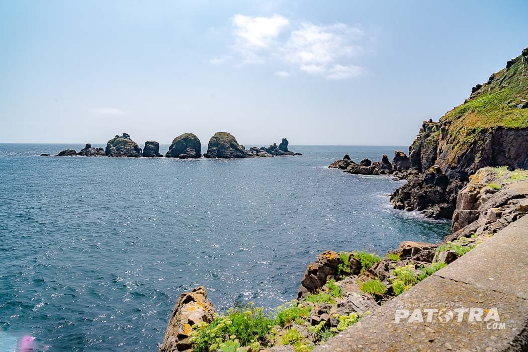 Wohlig gestärkt beginnen wir unsere kleine Wanderung. Von der Promenade, die von wenigen Cafés, Restaurants und Souvenierlädchen gesäumt wird führt ein Weg entlang der wilden Klippen, begleitet vom Rauschen der Wellen.