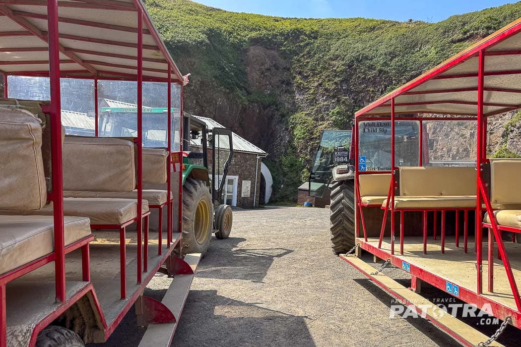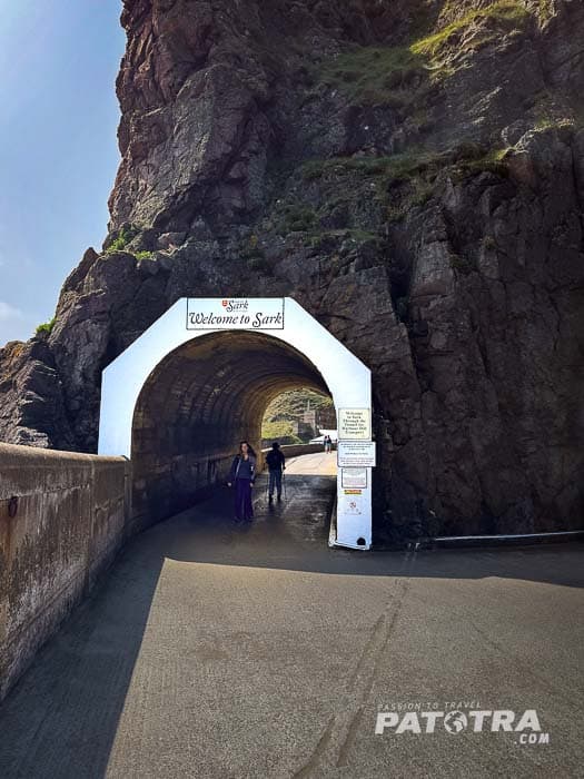Die Insel Sark ist tatsächlich wie gemacht zum Wandern. Vom Hafen aus führt der Weg durch einen Tunnel rauf zur Insel. Gleich dahinter warten knatternd zwei Traktoren mit Anhänger, um die Gäste für ein paar Pfund bergauf zur Ortschaft zu bringen, Wer sich das Geld sparen möchte, geht zu Fuss bergauf.