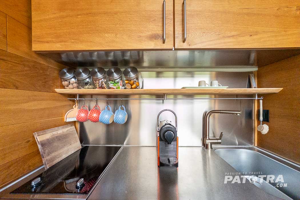 Es wird ganzjährig vermietet. Im Winter sorgen ein Holzofen und eine Infrarotheizung im Bad für Behaglichkeit. Eine kleine Kitchenette und ein Badezimmer mit einer grosszügigen Dusche sind auch vorhanden. Geschlafen wird in einem Hochbett direkt unter dem Dach, das über eine Leiter erreicht werden kann.