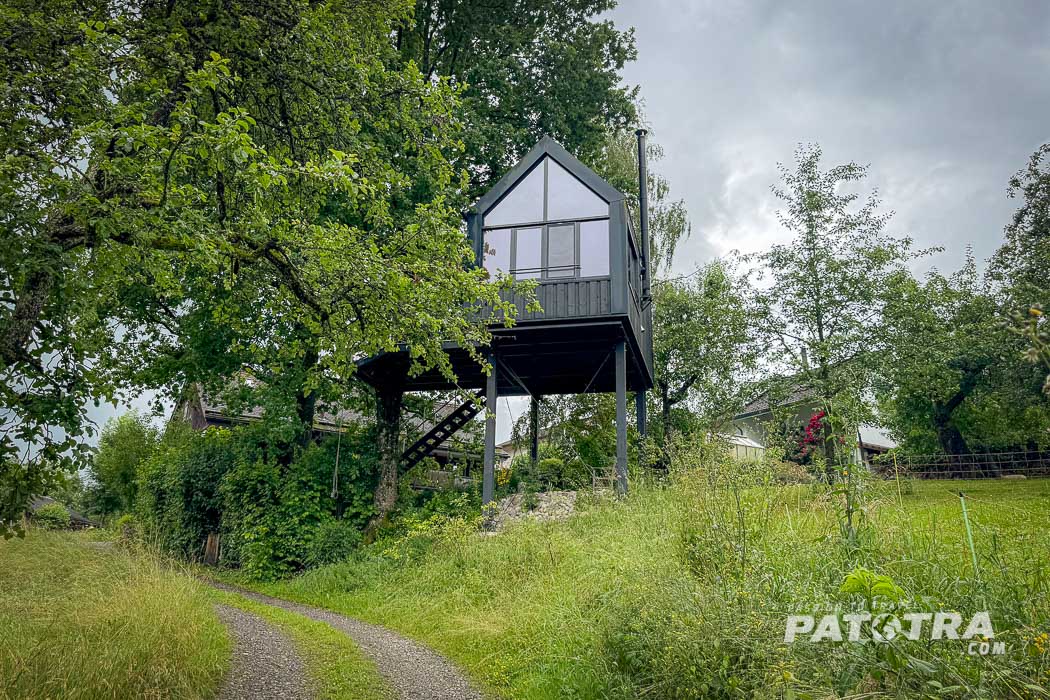Im Kanton Thurgau befindet sich inmitten von Streuobstwiesen eine ganz besondere Übernachtungsmöglichkeit: ein traumhaftes und modernes Baumhaus.
