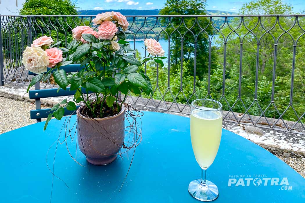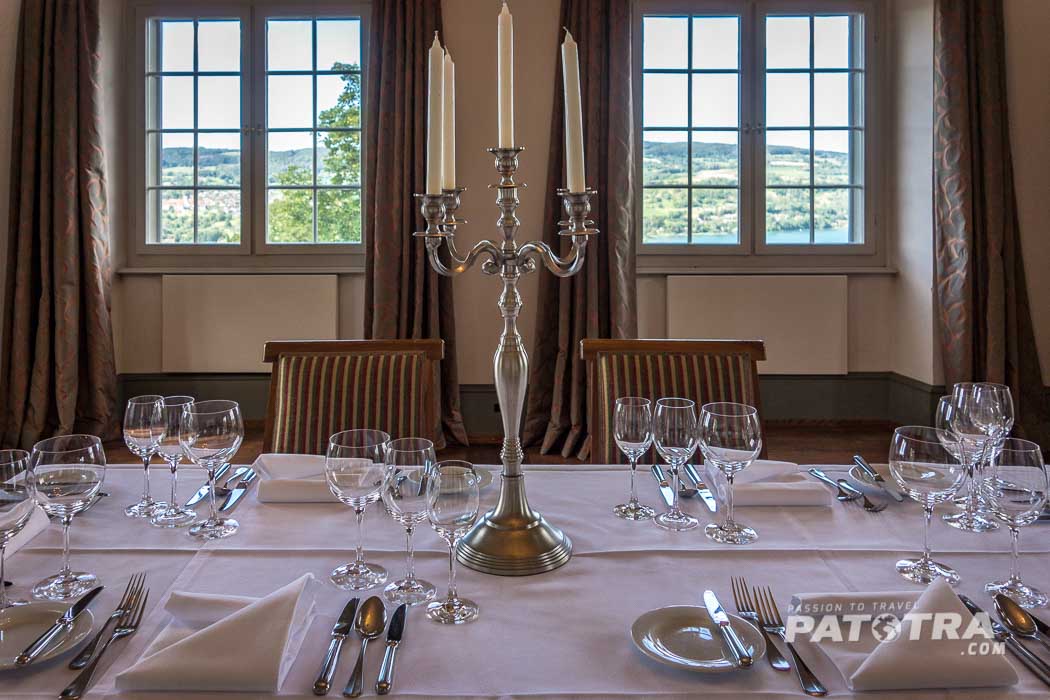 Der Check-in erfolgt ganz entspannt bei einem Willkommensdrink auf der Schlossterrasse, die mit einem traumhaften Ausblick über den Untersee und die Halbinsel Höri entzückt.