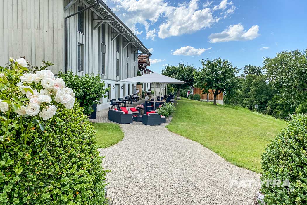 In der ehemaligen Scheune, der Schüür, befinden sich die modernen Gästezimmer und hier ist auch das Restaurant mit grosser Terrasse.