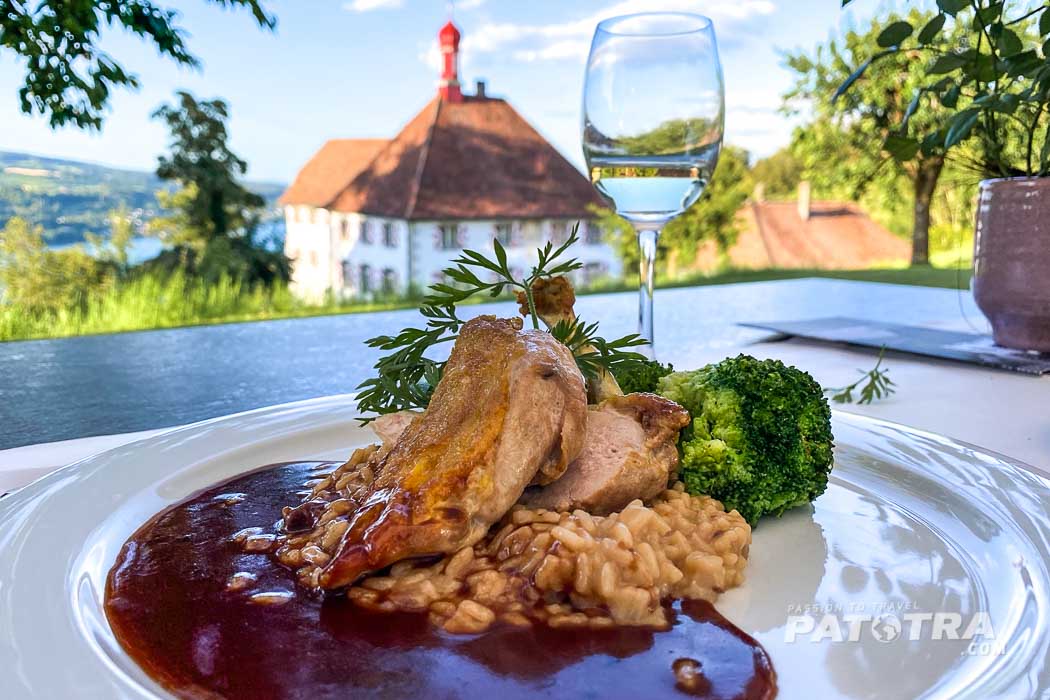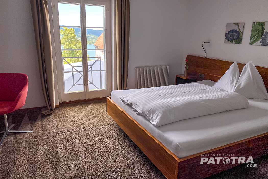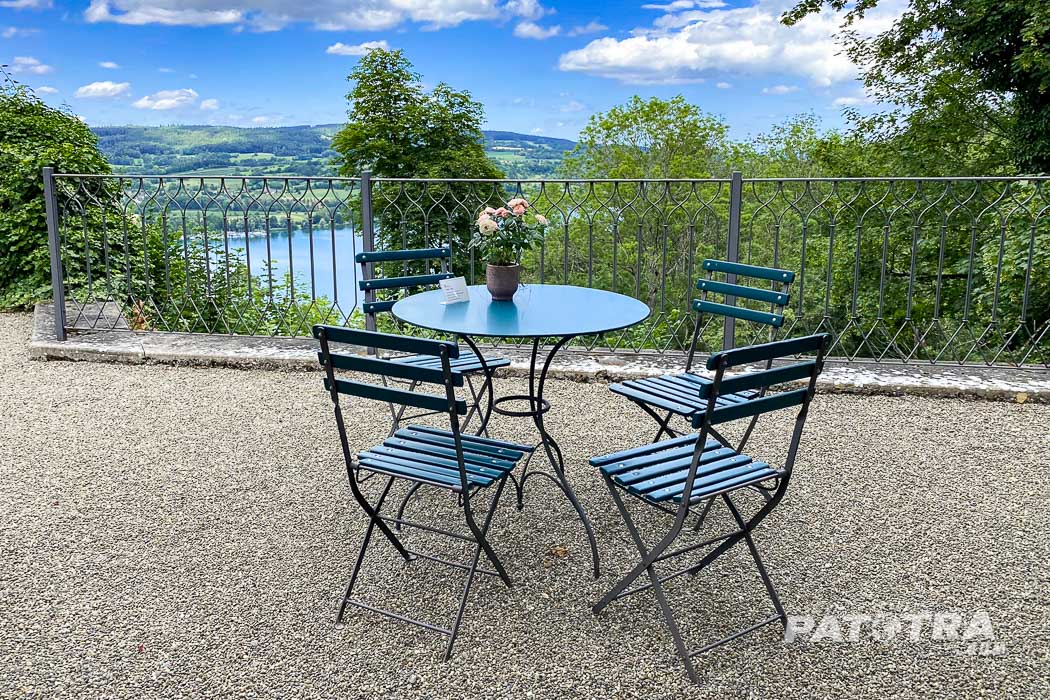 Das Restaurant ist auch für die Öffentlichkeit zugänglich. Was für ein wunderschöner Ort! Immer wieder zieht das blaue Wasser des Untersees meinen Blick magisch an.