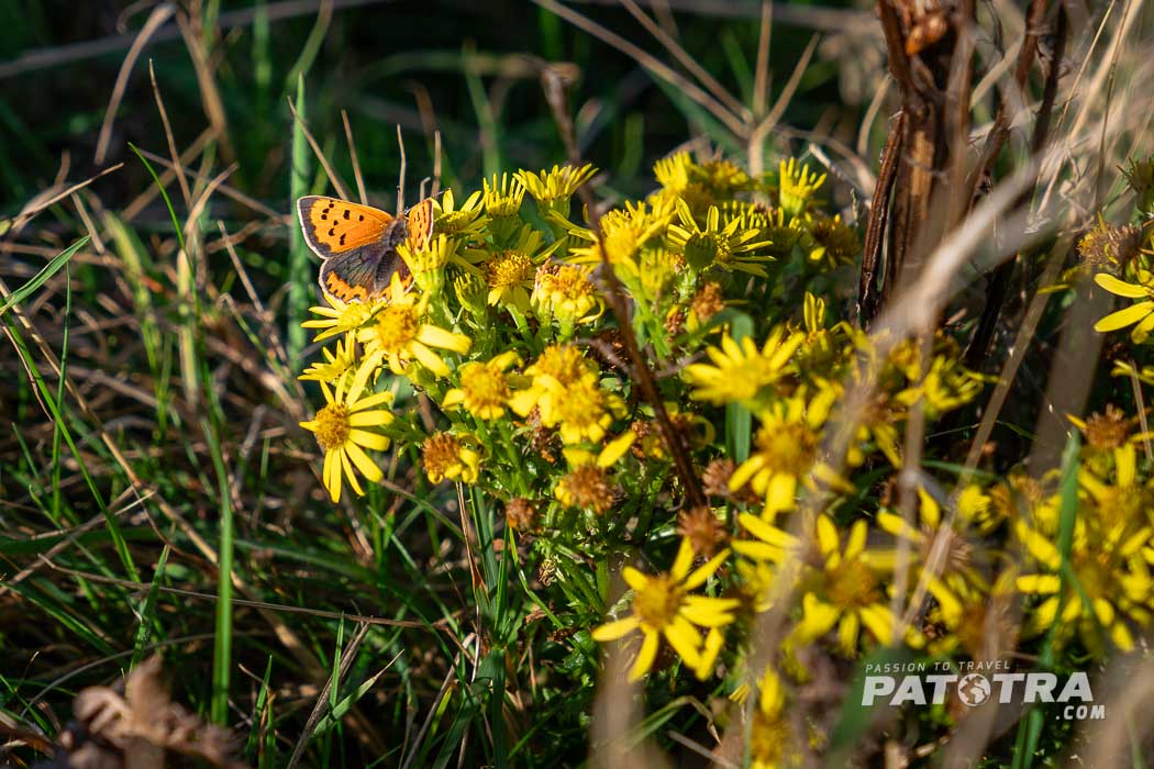 Vor uns glitzert das Meer, die Sonne steht überraschend warm am Himmel, sodass wir Ende Oktober zeitweise sogar die Jacken ausziehen können. In der Ferne liegen Skokholm und Skomer Island wie grüne Tupfer im tiefen Blau, während unter uns die Klippen spektakulär ins Meer stürzen. Das Licht tanzt auf den Wellen, der Wind trägt Salz und Freiheit mit sich.